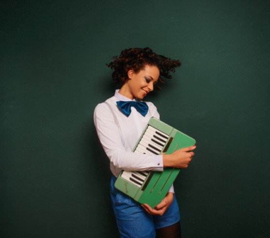 Dann halte ich inne, will einen Schritt weiter gehen. Nehme mir Zeit und Raum für mein neues Album. Ich reise an kribblig besondere Orte, über Meer und Wüsten hinweg, mache mich auf den Weg in mein zweites Zuhause nach Accra, Ghana. Ich setze mich mit meinem Produzenten Achille Fonkam inTastenräumen zusammen, fliege mit ihm zum Inspirationstanken nach Paris. Es wird das fünfte Jahr, das wir gemeinsam bestreiten. Wir umarmen St. Germain des Près, tappen auf hellwachen Spuren durch die Rue Vernueil und wandern weiter in unserer Klangwelt. Ich verschwinde abrupt im Studio und setze mich zurück an die Tasten. Jage durch Höhen und Tiefen, zetere und zanke mit mir. Entscheide, mich nur noch auf die guten Dinge zu konzentrieren. „Nur die guten Tasten“ so hüpfen sie auf mein zweites Album. Sie sind diejenigen Tasten im Leben, die ich betätigen will, um mit ihnen alles in etwas Gutes wandeln zu können, die kleinen Dinge zu sehen, die ich hineinlassen möchte zu mir, die Dinge, auf die es sich zu konzentrieren lohnt. Ich begebe mich horchend auf ihre Suche, nach den Sequenzen